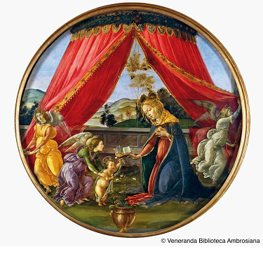 Botticelli incontra Botticelli. Succede a Milano, in una straordinaria occasione di confronto organizzata dalla Pinacoteca Ambrosiana. Ecco dunque “Apocalittico Botticelli”, una mostra curata da don Alberto Rocca, Dottore della Biblioteca Ambrosiana, che mette a confronto un Botticelli “di casa”, con la Madonna del Padiglione già parte della collezione milanese, e la Natività mistica, della National Gallery di Londra. Un prestito esclusivo reso possibile dall’invio a Londra del Ritratto di Musico di Leonardo da Vinci che per la prima volta esce dai confini italiani. L’opera del genio fiorentino è uno dei pezzi fondamentali dell’esposizione “Leonardo da Vinci pittore alla corte di Milano” già definita la mostra del secolo.