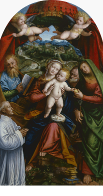 Inizia da questo momento un intenso rapporto di scambio tra suocero e genero, del quale è esempio la Madonna con il Bambino e i santi Giacomo, Giuseppe, Marta e donatore (ca. 1543), entrata in Pinacoteca nel 1808 con le soppressioni napoleoniche degli ordini religiosi e già in Santa Maria delle Grazie a Novara. L’impostazione ha infatti numerosi punti di contatto con la pala dipinta da quest’ultimo per la cappella della Maddalena in San Francesco a Vercelli (1543, ora alla National Gallery di Londra). Il motivo del baldacchino, inoltre, si trova nella Madonna con il Bambino, santi e angeli, opera di Lanino per la chiesa dei Santi Pietro e Paolo a Borgosesia. Nel paesaggio si riconosce invece il Sacro Monte di Varallo Sesia come si presentava all’epoca, opera in cui giocò la parte del protagonista lo stesso Gaudenzio Ferrari.