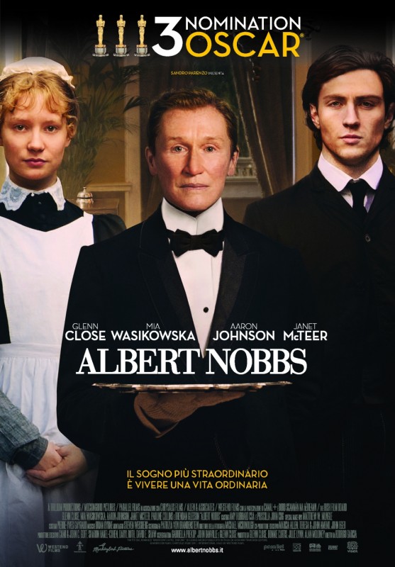 La grandezza di Glenn Close in questo film merita lo stesso inchino che l’ossequioso Albert Nobbs riserva ogni giorno agli abbienti clienti del ristorante di Mrs Baker (Pauline Collins). Mr Nobbs non ha bisogno di maschere e di trucchi, solo di una corazza che contenga e nasconda la sua femminilità allo sguardo del mondo.