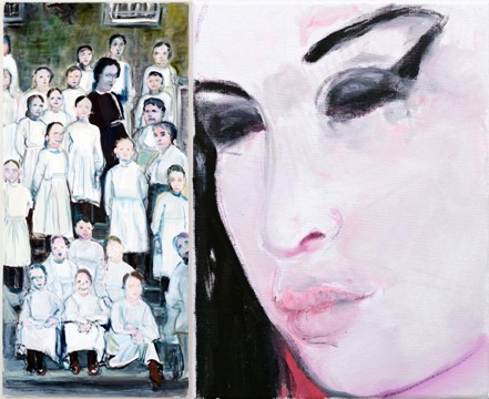 Invitata dalla Fondazione Stelline, Marlene Dumas ha consultato il vasto archivio fotografico della Fondazione e ha scelto tre immagini risalenti agli inizi del Novecento per trarne altrettanti dipinti. Nel primo una classe di ragazzine riunita intorno alla loro insegnante: vestite coi grembiuli chiari, sedute o in piedi, attorniano la maestra in abito scuro e guardano verso di noi, i volti quasi cancellati dal tempo ed evanescenti. Le altre due immagini, intitolate “Stellina” e “Destino”, ritraggono invece due bambine, le “stelline” appunto, come erano chiamate le ospiti dell’orfanotrofio, con la divisa usata nelle uscite ufficiali. “Stellina e Destino mi ricordano una fotografia di mia madre da bambina. Vecchie immagini di giovani ragazze, che oggi non fanno più parte di questo mondo, ma che allora avevano ancora il futuro e la fortuna intatti davanti a loro”, spiega la Dumas stessa. Il passato non si può distruggere, è sempre presente, come sempre sarà, in questi luoghi, lo spirito di tutte le stelline che ci hanno abitato.