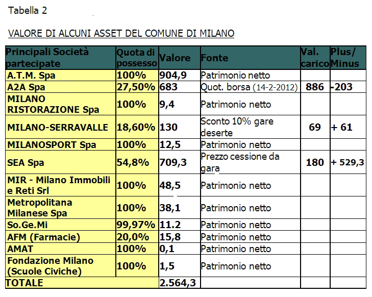 Ancora più grave la situazione dell’indebitamento: ha superato i 4,2 miliardi di euro facendo di Milano la città con il più alto debito d’Italia in valore assoluto e con parametri procapite tre volte peggiori rispetto alla media dei comuni italiani. Il trend inerziale (cioè in assenza di interventi correttivi) anche per effetto dei tagli operati dai governi Berlusconi e Monti nel corso del 2011, identificava per il prossimo quadriennio un catastrofico deficit di parte corrente superiore al 20%.