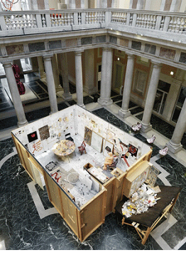 Al centro dell’atrio del palazzo campeggia l’opera da cui prende il titolo la mostra: Madame Fisscher (1999-2000). L’installazione, che riproduce in modo preciso il caotico atelier londinese di Fischer, funge da nucleo creativo e generativo di tutto il percorso espositivo. Scopo della mostra è infatti coinvolgere il visitatore nella creazione della materia artistica. In questo senso i meccanismi in bella vista, come quelli del cagnolino elettrico Keep it Going is a Private Thing (2001), rendono il senso della creazione artistica mediante il movimento e la dinamicità, volutamente in contrasto con la staticità monumentale e la perfezione formale dell’enorme Ballon Dog di Jeff Koons, talmente perfetto da sembrare più finto del finto.
