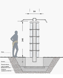 I muri alti 240 cm e larghi 64 cm – che si intende erigere per uno sviluppo complessivo di circa 50 metri – richiedono fondazioni profonde (almeno un metro), in parte evidenziate nella sezione di cui alla figura 3: una colata di cemento inaudita.