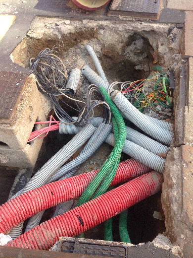 Che qualcosa resti scoperto però non è male, così posiamo vedere come questa città affronti il problema delle reti nel suo sottosuolo, non avendo mai voluto affrontare seriamente il problema dei cunicoli per sottoservizi: marciapiedi sottosopra e sicurezza delle reti pari a zero.