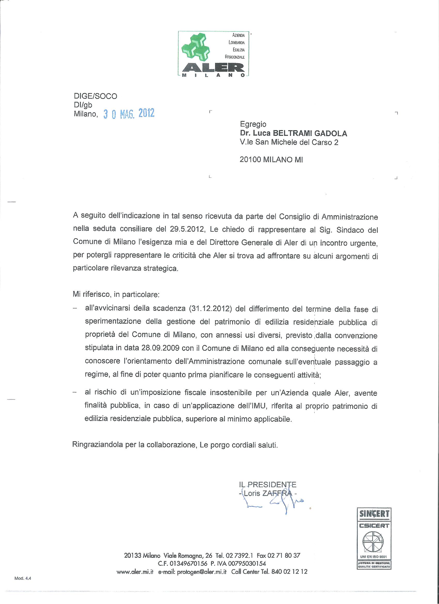 Di questo fatto, che aggravava la situazione debitoria, mi lamentai per iscritto anche col sindaco senza particolare riscontro, sollecitando contemporaneamente un incontro tra lui e i vertici di Aler, richiesta fatta per mio tramite in quanto consigliere da lui designato, per poter illustrare l’insostenibile situazione del patrimonio di edilizia residenziale. L’incontro non vi fu ma la gestione delle case popolari del Comune alla fine passò ad MM senza che la crisi di Aler vedesse una soluzione.