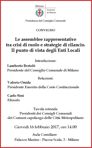 02bertole_06Giovedì 16 febbraio alle 14, a Palazzo Marino, la Presidenza del Consiglio Comunale di Milano ha deciso di promuovere e organizzare un momento di confronto e approfondimento sul tema della rappresentanza, a partire dalla crisi di ruolo delle assemblee rappresentative e sulle strategie di rilancio.