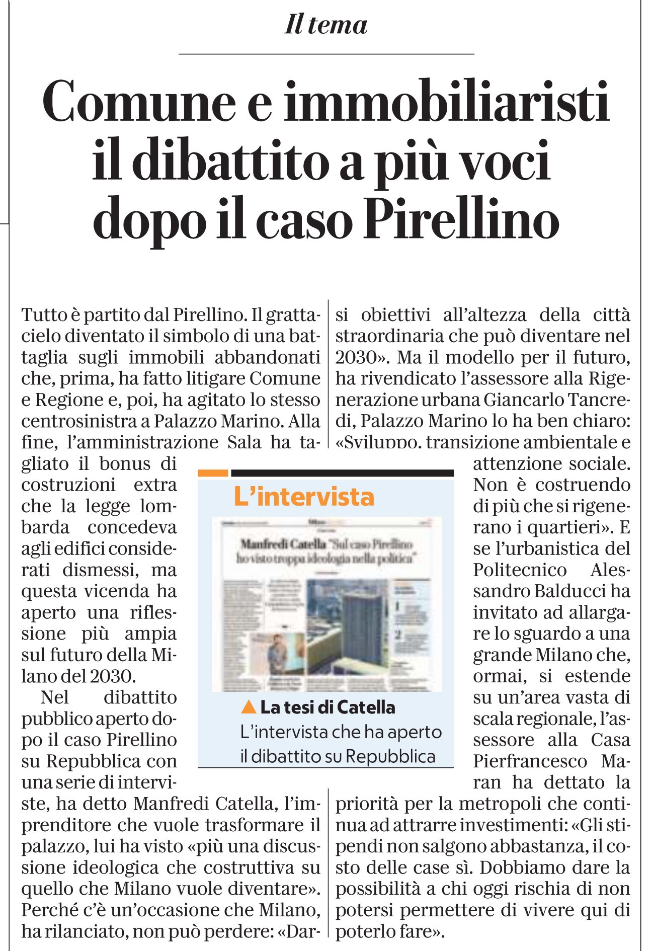 Sempre interessante la nota di Repubblica – Comune e immobiliaristi il dibattito a più voci dopo il caso Pirellino – (clicca qui) per le ultime parole dell’assessore Maran: “Gli stipendi non salgono abbastanza il costo delle case sì. Dobbiamo dare la possibilità a chi oggi rischia di non potersi permettere di vivere qui di poterlo fare”.